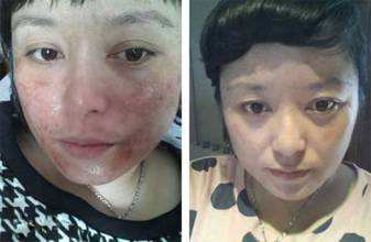 治疗前:31岁的赵女士喜欢用名贵的化妆品。不久前她的脸上出现了一些小疙瘩,就涂一些外用药。用了以后她发现病情缓解了,有的小疙瘩也消失了。可是,一停药就复发。