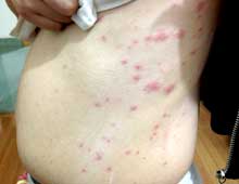 治疗效果:初次治疗之后瘙痒基本消失,一周皮损自愈,后续中药治疗3个疗程,症状消失,皮肤恢复光洁。