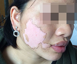 我院主任主任亲自接诊了她,发现她的白癜风尚处于进展期,不具备马上做手术的条件。于是吕主任辨证开药,帮她控制病情,三个月后,白斑从进展期转为稳定期,终于具备了手术条件。通过我院黑色素细胞移植手术,成功助她远离了"白魔"!