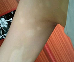 这是一个白癜风病例,患者来自合肥市区,有五年多的发病史。她说,自己和老公开了一家店,生意做得红红火火,但是自从发现脸上、手臂上长了很多白斑,面积扩散越来越大,她就越来越怕见顾客了,后来干脆就只做不见客的"老板娘"了。