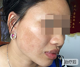 1、治疗起效阶段7-25天:白斑处皮肤向红色、深红色、褐色转变。在病变部位毛孔处出现针尖大小的色素斑点,形状像小岛,称之为“色素岛”。