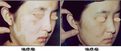2、治疗强化阶段25-50天:白斑边缘或中间出现毛囊性黑点,体内黑色素细胞增多,病变部位黑色素沉着由周围慢慢向中间聚集,将看到白斑面积逐渐向中间缩小。小面积的白斑可全部恢复,大面积的白斑可恢复皮损面积的70%。此阶段为治疗的强化阶段。