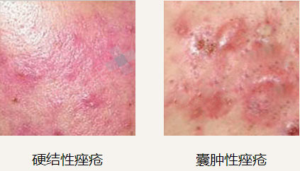 病症:痘龄3年,现面部数个痤疮结节在深部聚集融合,有红肿颜色青紫。丘疹或脓疱性痤疮破坏腺体而形成凹坑状萎缩性瘢痕。