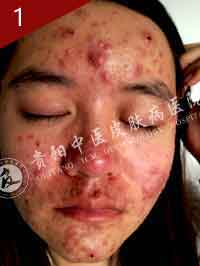 1.2014年11月20日,排名较好次来院做治疗,额头全是脓包痘痘。