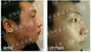 王同学,安徽大三学生,重度集聚型青春痘,用过多种护肤产品,结果越来越严重,网上查找后来院就诊,何斌专家为其制定了“中医理疗+医学美肤”个性诊疗方案,两个疗程后(一个疗程5-7天),效果,常医生为其拍摄了2张照片记录了他的祛痘经历。用他的话来讲,仅仅14天,全部康复真的是很神奇,没想到中药的修复效果如此好。