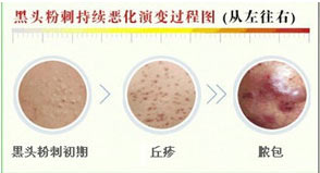 粉刺不及时治疗可进一步发展会演变成各种炎症性皮损,表现为炎性丘疹、脓疱、结节和囊肿。