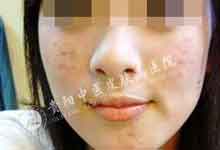 合肥肤康皮肤病医院祛痘专家何斌主任接诊了该患者,诊断为脓包型痤疮。因脸上这样的惨状,她很不自信,常把自己关房间里,同学聚会也不参加...从这个女生的诉说中,常主任还得知了她此前在别处求医后治疗无效的无奈。