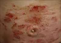 2、亚急性湿疹:皮肤瘙痒,皮疹以丘疹、鳞屑、结痂为主,搔抓后仍出现皮损糜烂。