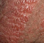 由急性阴囊湿疹转变而来,表现为阴囊皮肤轻度变厚和轻度糜烂,鳞屑较多,渗液甚少,仍有剧烈瘙痒。