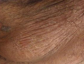 由急性、亚急性湿疹长时间不愈、反复发作而来。由于时间长,加上不断的搔抓,使阴囊的皮肤干燥肥厚,皱纹变深,呈核桃皮状,常有薄薄的痂皮和鳞屑,皮肤色素加深;也有因搔抓引起色素减退的情况。常常剧烈瘙痒,无法入睡。由于治疗困难,反复不愈,阴囊皮肤可出现象皮肿样改变。