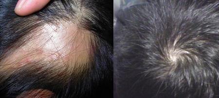 治疗前:江先生大学的时候,就开始出现掉头发的情况,而且掉得很厉害,每次洗头都会掉一大把头发。后来,头顶就渐渐形成了一大块斑秃。每次看到很多广告说某某产品可以生发,江先生就会买回来试试,结果试了一种又一种,效果却并不。