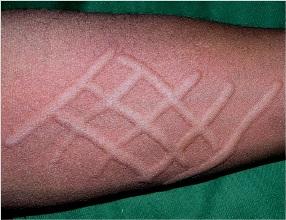 2、划痕:一挠就起密密麻麻的划痕,痒到不行;
