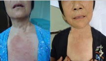 治疗:我院专家依据患者症状先通过过敏原检测仪对其进行病源检测,在针对性采用“中药熏蒸经络免疫疗法”,口服中药调理过敏体质,提高皮肤对过敏源的耐受性。利用中药熏蒸达到血管血液的消炎清毒作用, 排除血液中的有毒物质和过敏因子及过敏介质。经过3个疗程的巩固治疗,患者已康复。