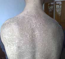 后来病情加重,发展到周身不适,脖颈后背和腿部皮肤为鱼鳞状、鳞屑灰褐色,触之似甲,无汗毛,病情冬重夏轻。2009年7月,来到合肥肤康皮肤病医院接受治疗,治疗不到2个月,鳞屑大量脱落,皮肤不再干燥粗糙。3个月后,刘先生皮肤回到健康状态。